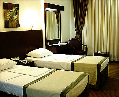 I dobbeltværelserne er der ”twin-beds”, dvs. to separate senge som står ved siden af hinanden.