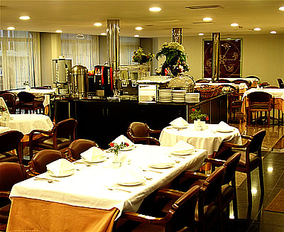 Hotellets restaurant servere åben morgenbuffet, frokost samt aftensmad.